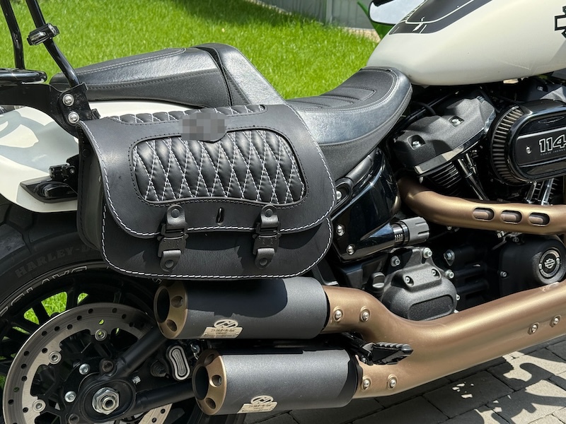 The fender strut bags for Softail models from 2018 can be made in various sizes up to 40cm wide, also with aluminium body. Due to the many models we have to discuss that, that's too much to list everything that is possible here