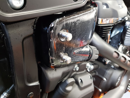 The swing arm bag, suitable for all Harley-Davidson® Softail models from model year 2018. Attachment using a docking kit is an elegant solution.