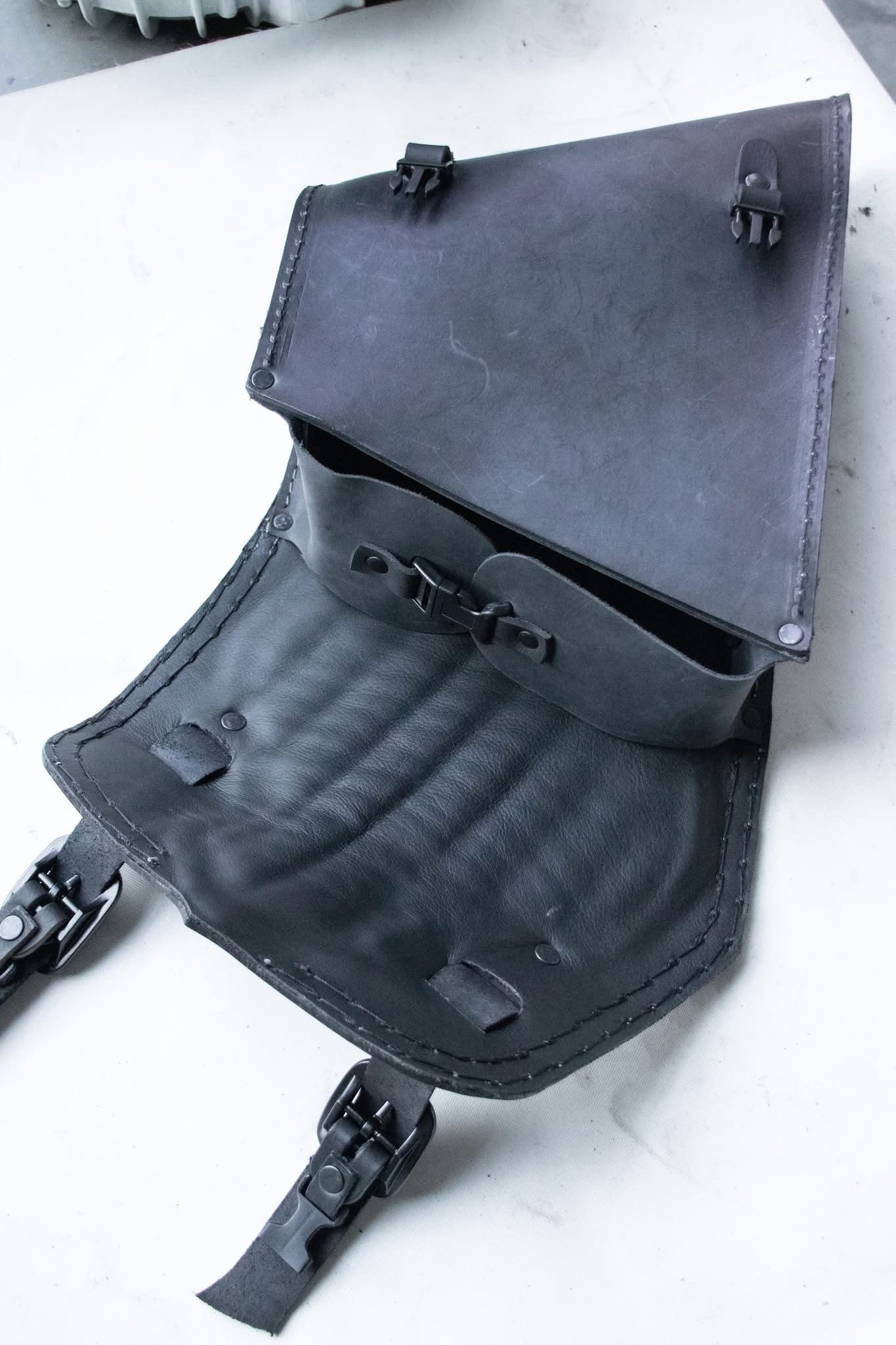Wie alle meine Taschen hat diese auch eine Rückwand aus Aluminium von innen vernietet.